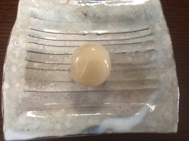続いて茶色い玉。こちらはコーヒーということですが、かなりはっきりと、思った以上にコーヒーの味がしてびっくり。炭火焙煎を思わせる香ばしい風味の中に、ちょっとコーヒー牛乳を思わせる懐かしさも感じられて、驚きとともにおいしくいただきました。
