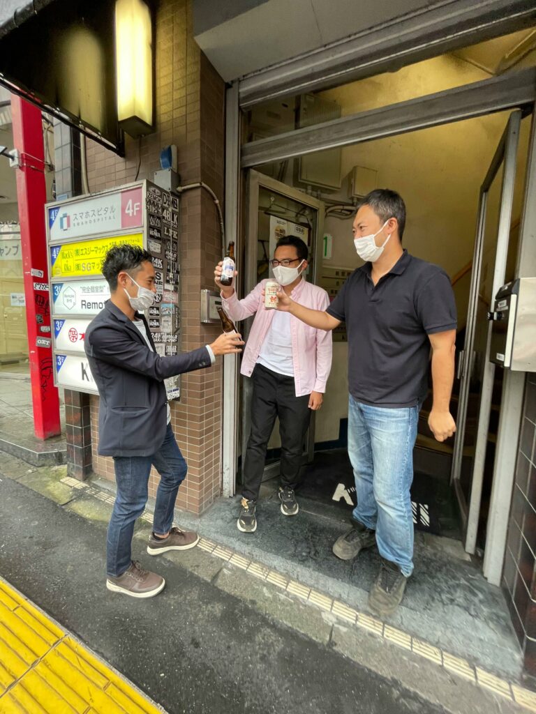 【路上飲みする人たちとやめさせたい都の職員】です。