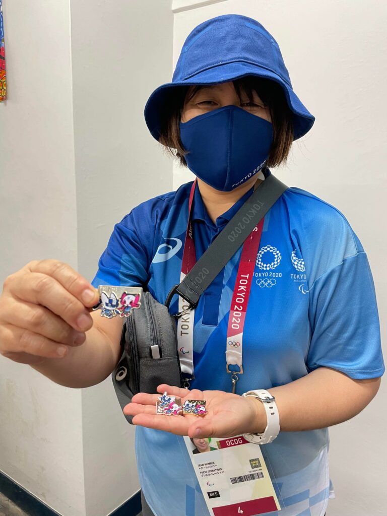 オリパラ名物のピンバッジ交換をしようにも、全員支給の4種類しか持ち駒がないボランティア同士が交換をするわけもなく、まったく行われなかったそうです。