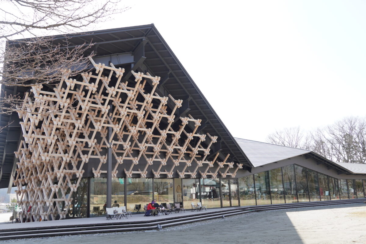 今回足を運んだスノーピークランドステーション⽩⾺は、新国立競技場の設計も手掛けた世界的建築家 隈研吾氏による設計。