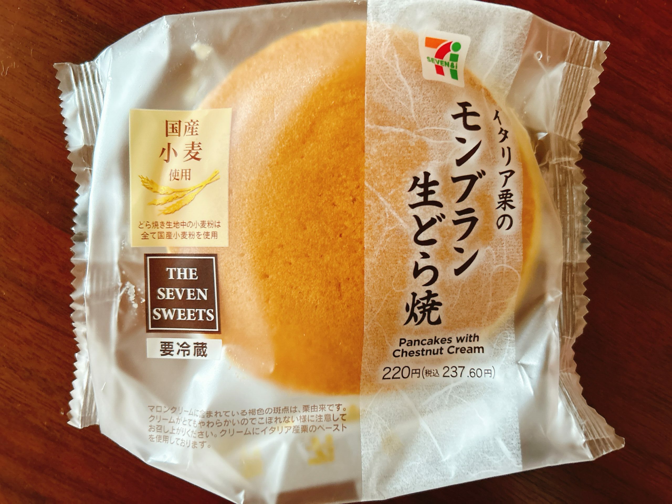 次にご紹介するのは「イタリア栗のモンブラン生どら焼」(税込237円)。モンブランのクリームのように絞ったマロンクリームとホイップクリームを、ふわふわのどら焼き生地で挟んだ和洋折衷スイーツです。