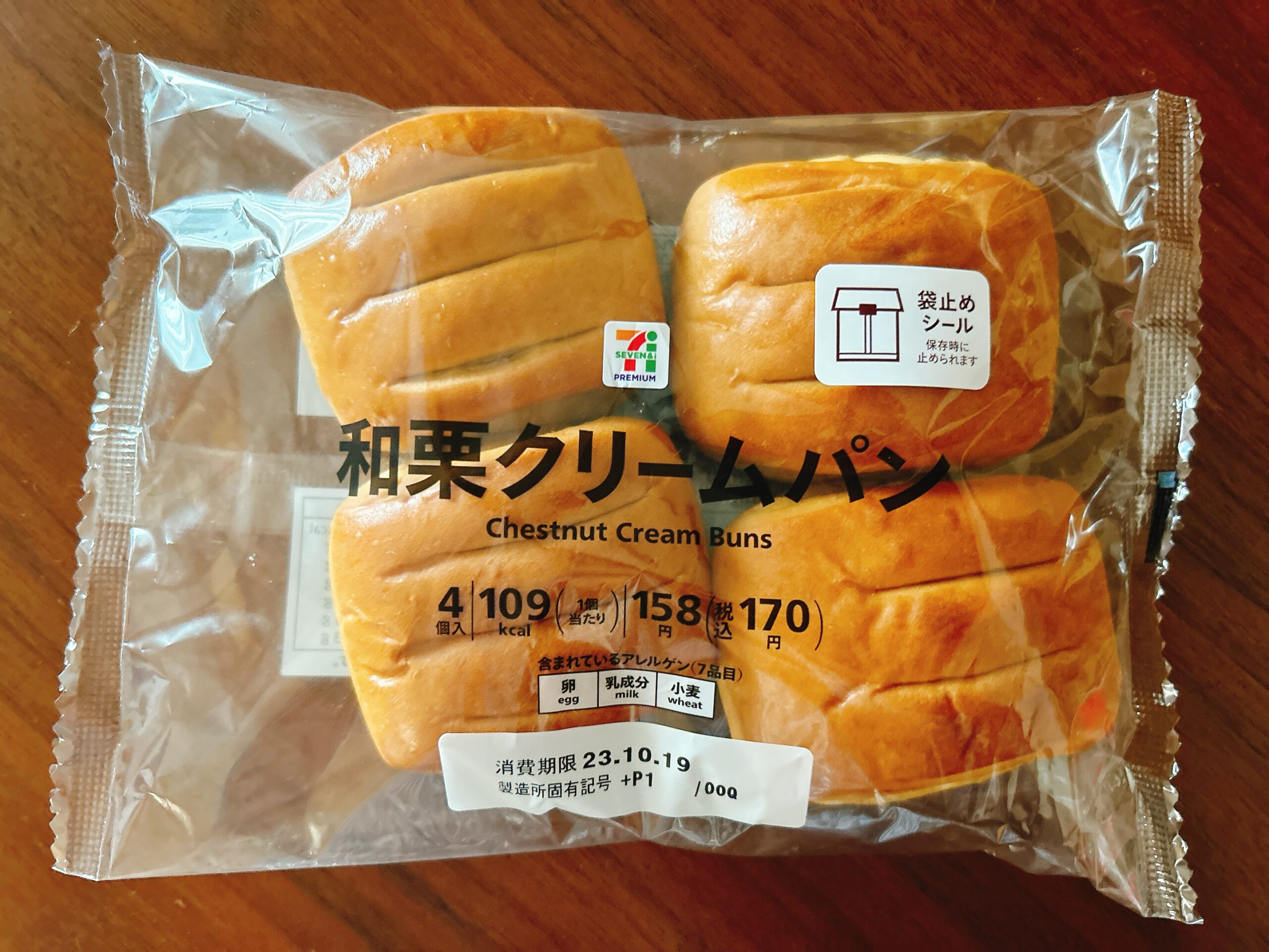 最後にご紹介するのは、パンコーナーで見つけた「和栗クリームパン」(税込170円)。いつものクリームパンに、和栗バージョンが登場していました◎