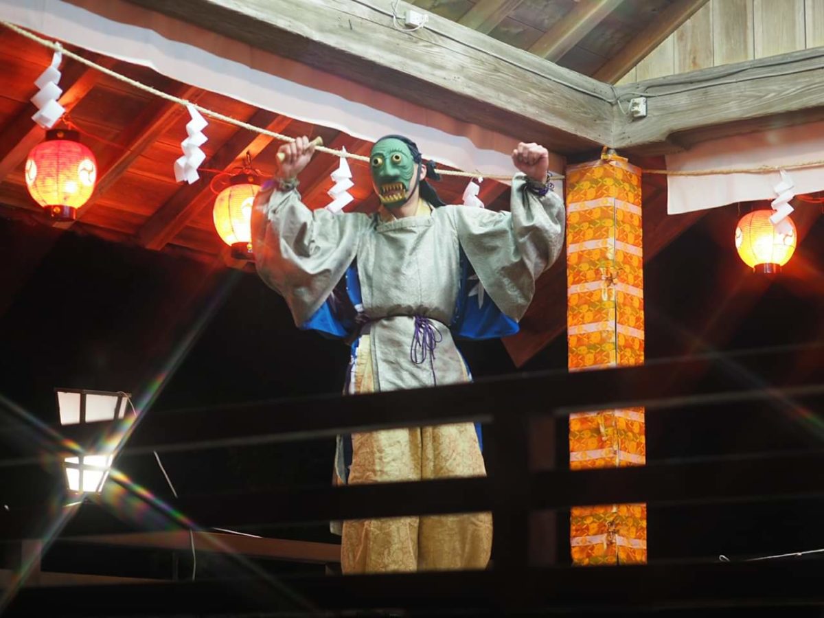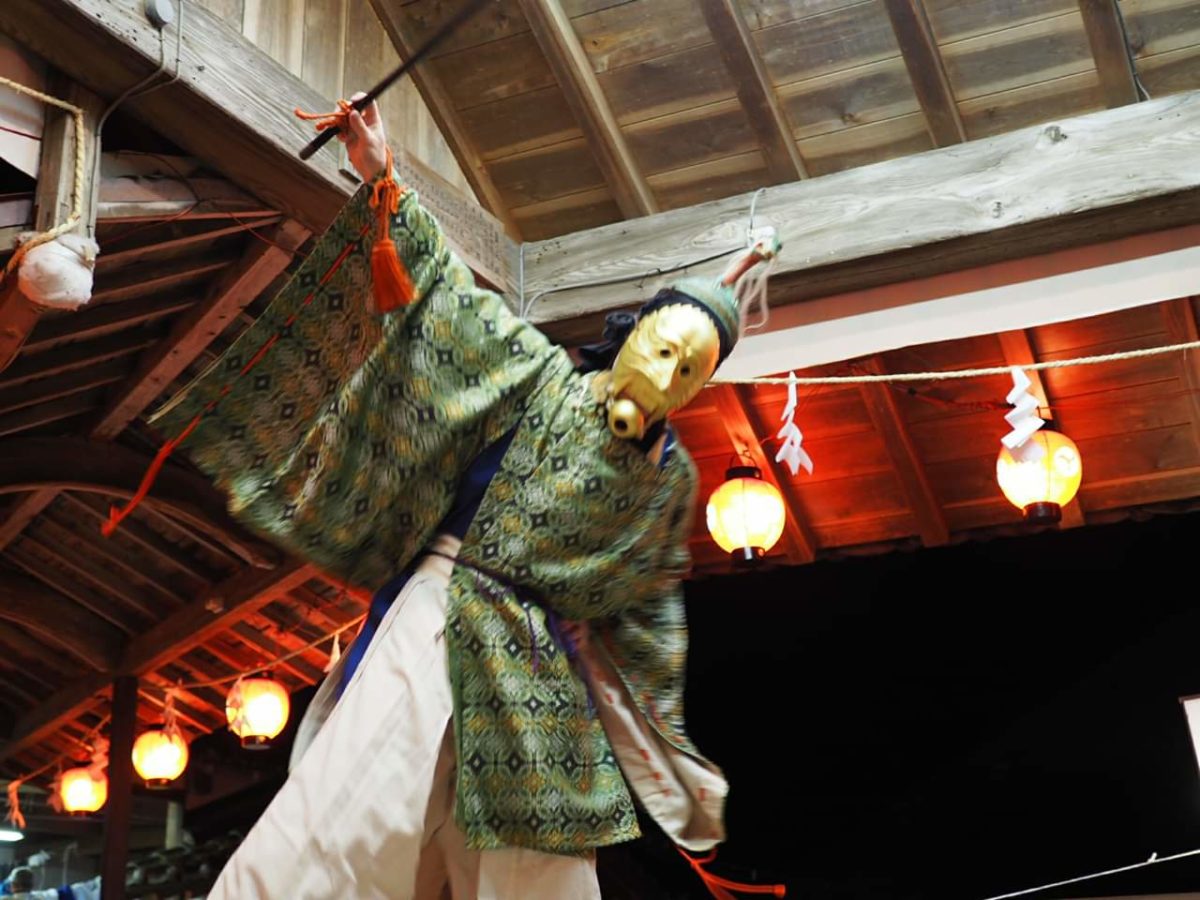 こちらの舞は「陵」の字を書きますが、当地では「龍」の字を書いて「龍王(りゅうおう)」とも呼ばれています。