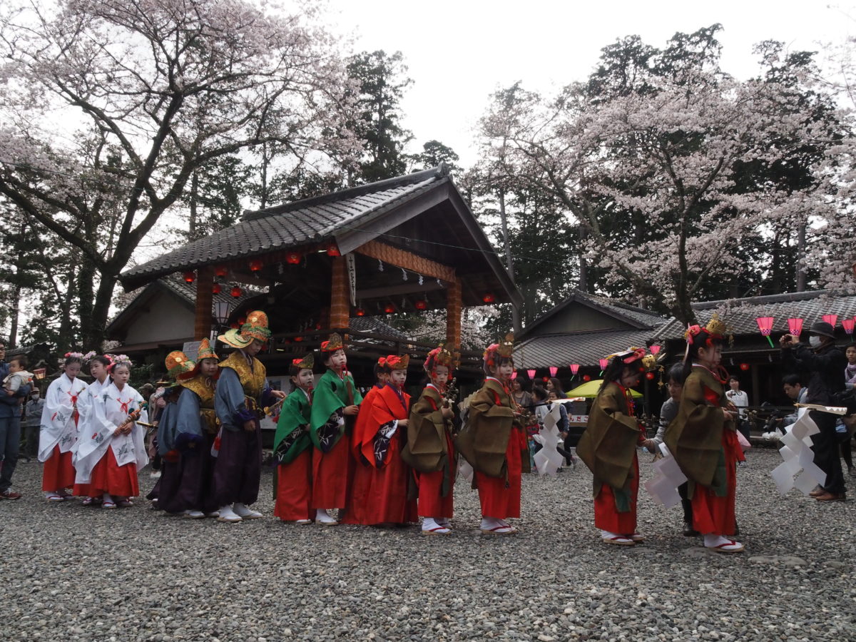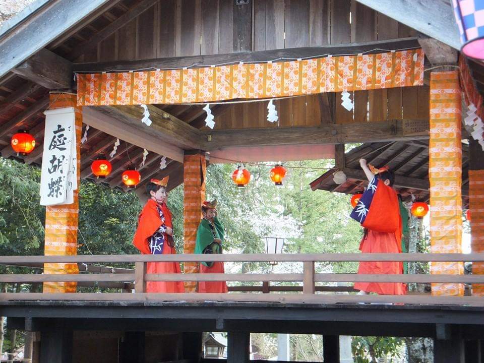神社に舞楽が伝わったのは、慶雲2年(705年)に文武天皇勅願により社殿等の造営がなされ、京から藤原綾足が神官として着任した時といわれてます。