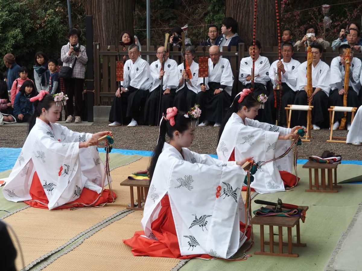 浦安舞は皇紀2600年を記念して昭和15年(1940年)に作られ、奉祝式典の中で世界平和の祈りを込めて一斉に奉奏されました。今では全国の神社の祭礼で奉奏されますので、見たことがある方も多いのではないでしょうか。もしかすると舞ったことがある方もいるかもしれませんね。