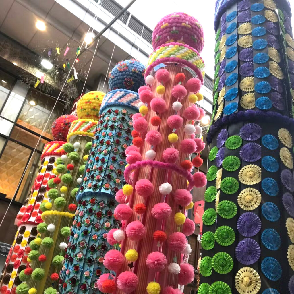 伝統的な京千代紙や江戸千代紙など、特徴が違う千代紙を巧みに使い、商店毎に趣向を凝らした飾り付けを毎年新しく手作りします。