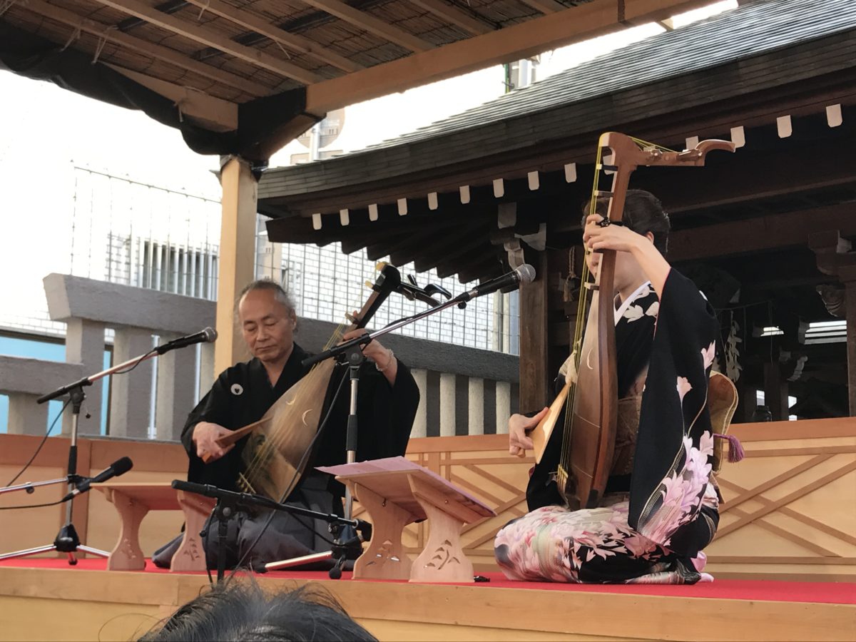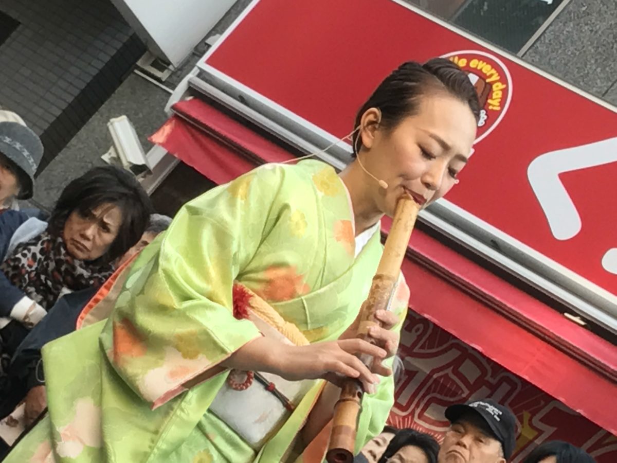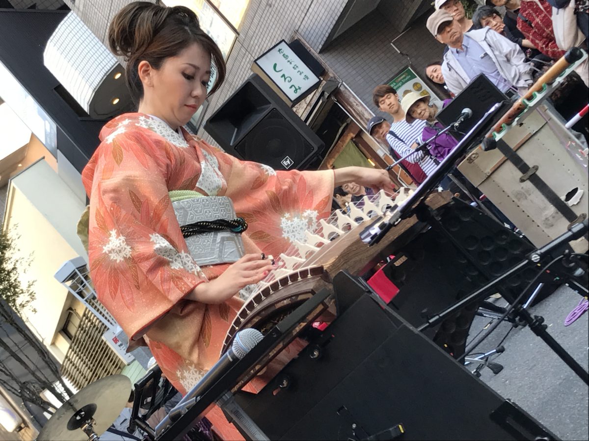 三味線はもちろん、雅楽、お琴、尺八、胡弓など、ちょっと高尚で構えてしまいそうな和楽器にも触れることができます。それも路上ライブで行われるので、ビール片手にふらっと立ち寄ることができ、とっても気楽。