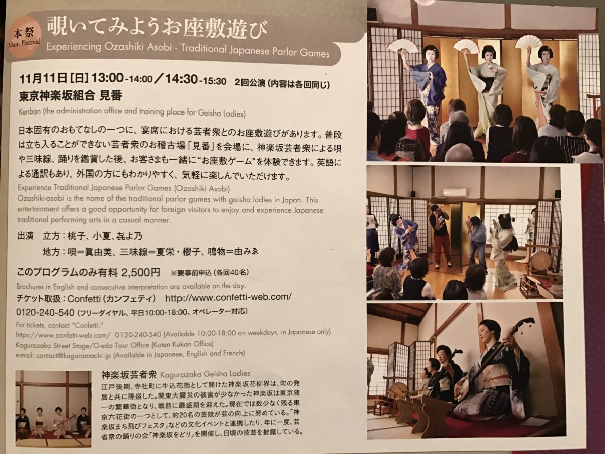 江戸の趣きが残る神楽坂の魅力を味わいつつ、普段着のままで、実は身近な伝統芸能にふれてみませんか。今回は2018年の11月に行われた当日の様子をレポートします!