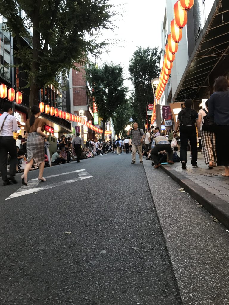 人出も適度で、歩道もまずまずの広さがあるので、お沿道で無理なく座って見ることができます。お店も多く、食べ物飲み物の買い出し、お手洗いの心配もありません。これは嬉しいですね!