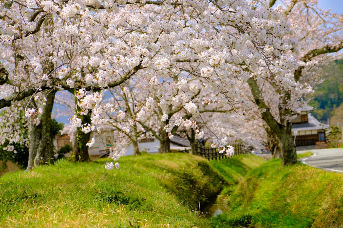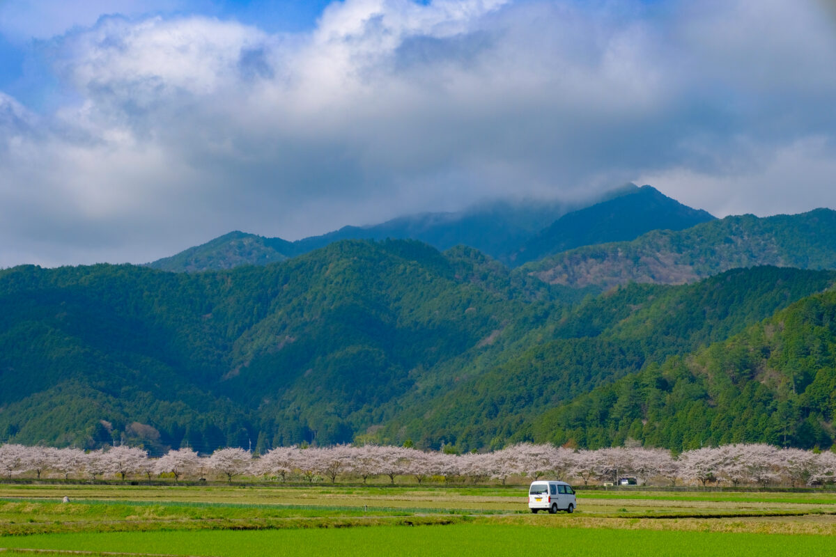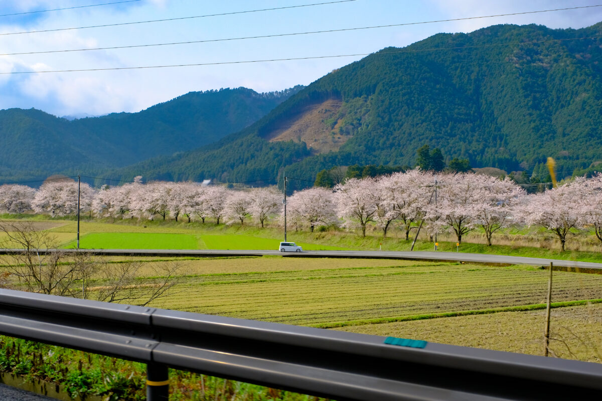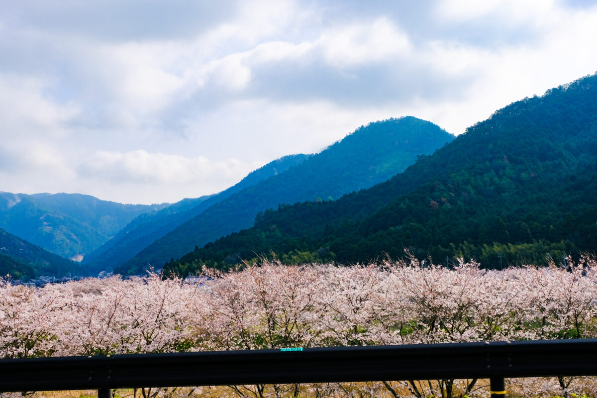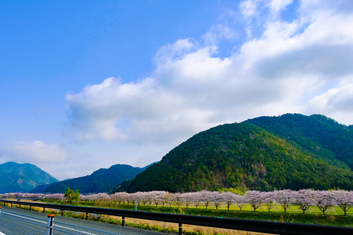 青垣ICで近畿豊岡自動車道をおり「丹波の森街道」を南下します。無料駐車場やベンチも整備されていて、桜並木を見つけては停車して川堤を歩き、また車で移動するというドライブ&ウォーク形式で快適にお花見を楽しむことができるのです。車で桜並木の下を走れる区間も一部ありますが、くれぐれも迷惑駐車はやめてください。