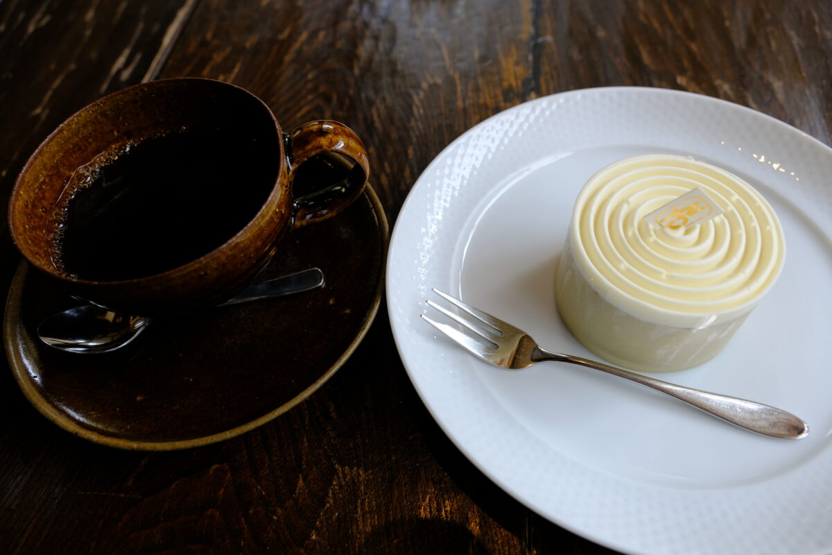 帰り際に柏原に本店を構える老舗・中島大祥堂のカフェで「丹波黒胡麻とほうじ茶」をいただきました。