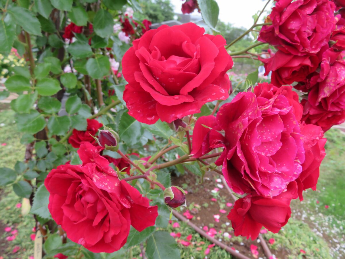 バラのリングの外周にも多種類のバラがユニークな姿を見せてくれます。