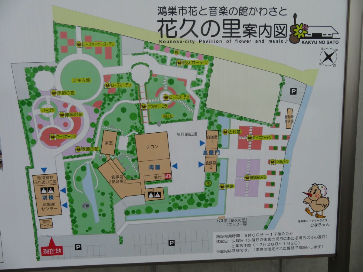 花久の里はJR高崎線の鴻巣駅から北約6キロに、2002年に「花と音楽の館かわさと」としてオープンしました。敷地の中央には江戸時代末期の1851年に建築された民家造りの旧母屋が移築され、定期的にコンサートが行われています。正面玄関の長屋門も特徴的で、歴史感を漂わせています。