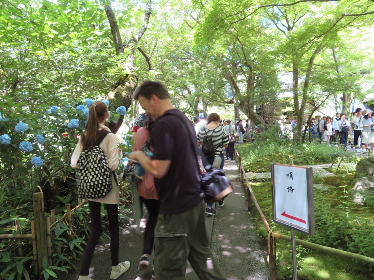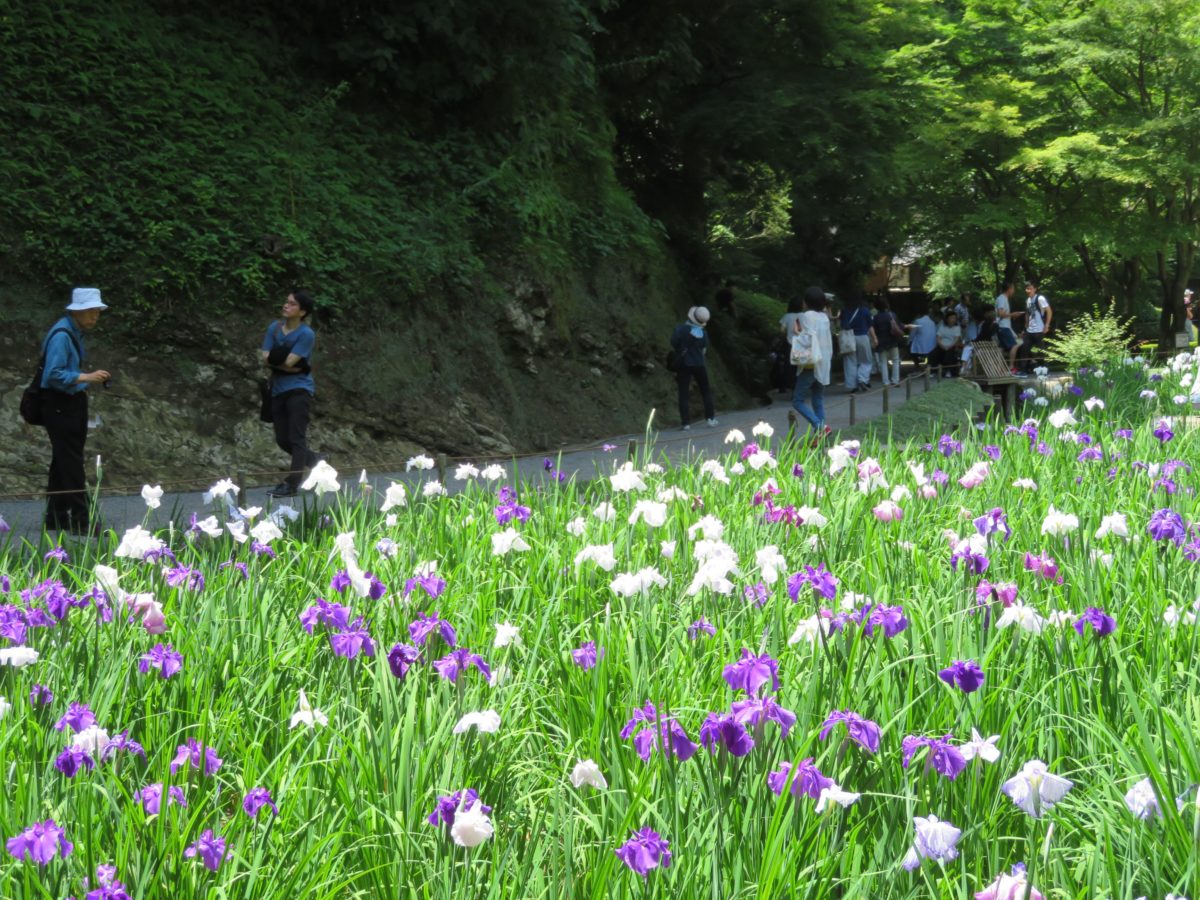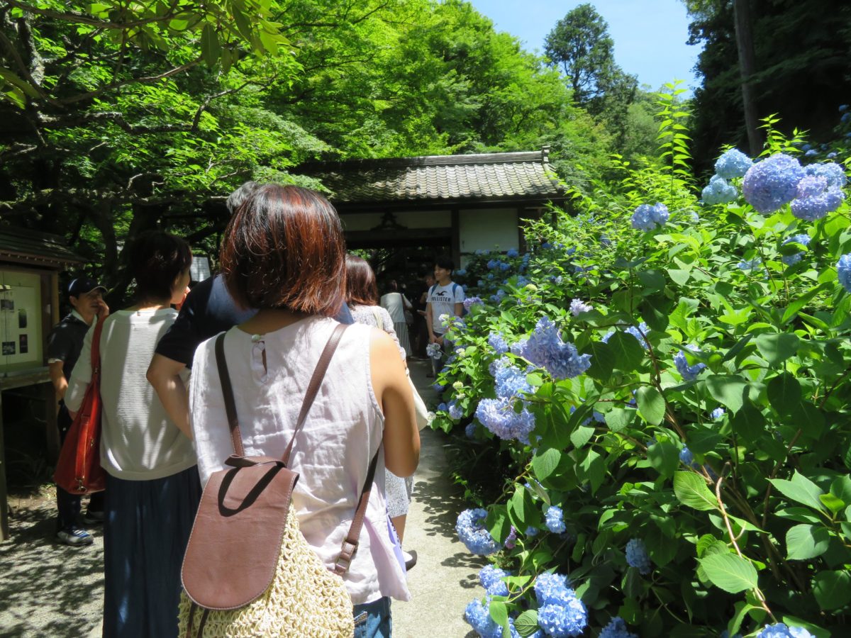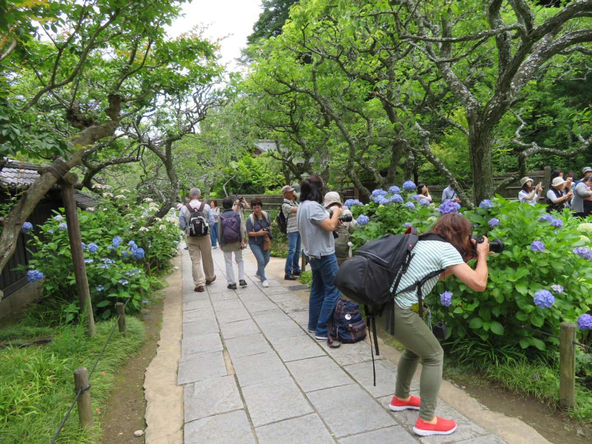 イワガラミ、ハナショウブなどと仲良く初夏の訪れを知らせる花の寺、東慶寺のあじさい