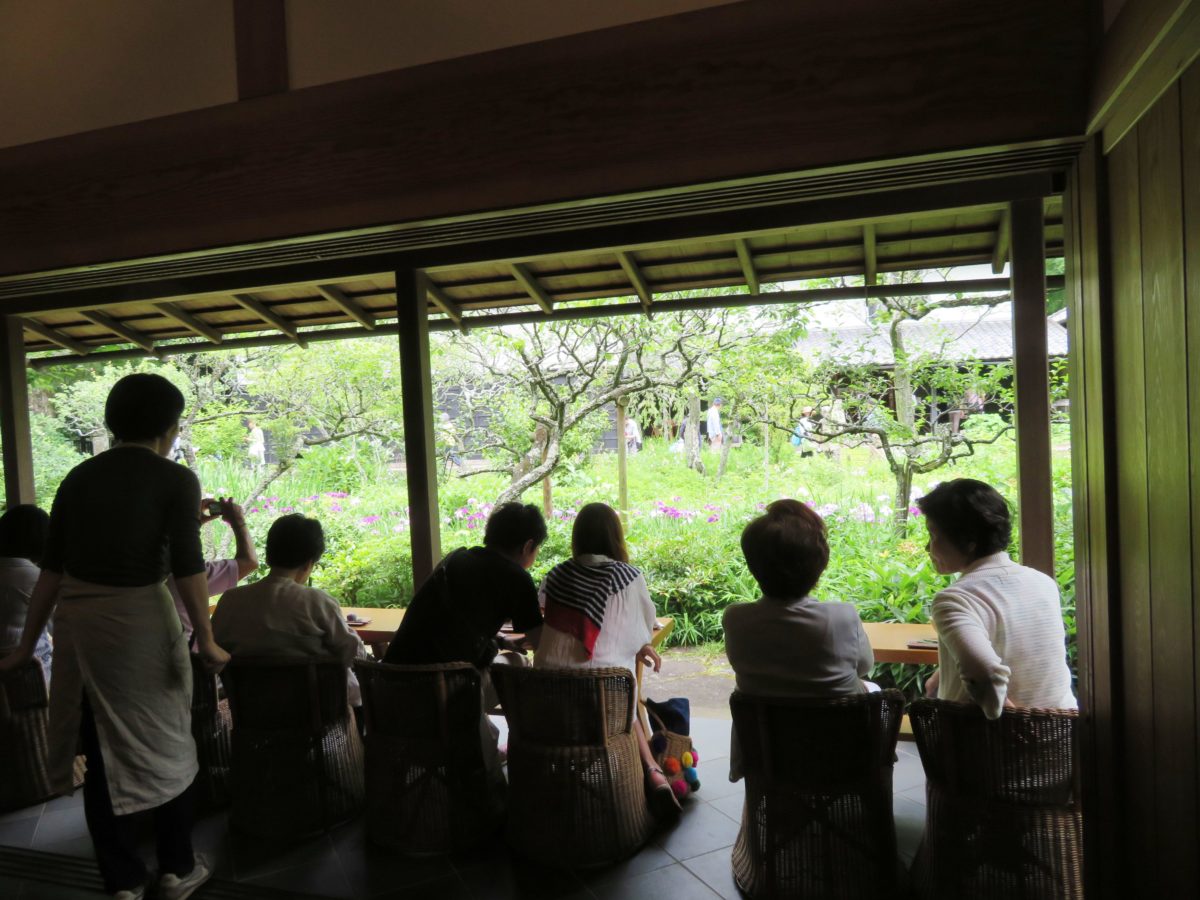 あじさいやイワガラミの他にも、松岡宝蔵をハナショウブに季節の化粧をつけています。茶室の白蓮舎では季節の彩りを眺めながら抹茶などのドリンクを楽しむことができます。
