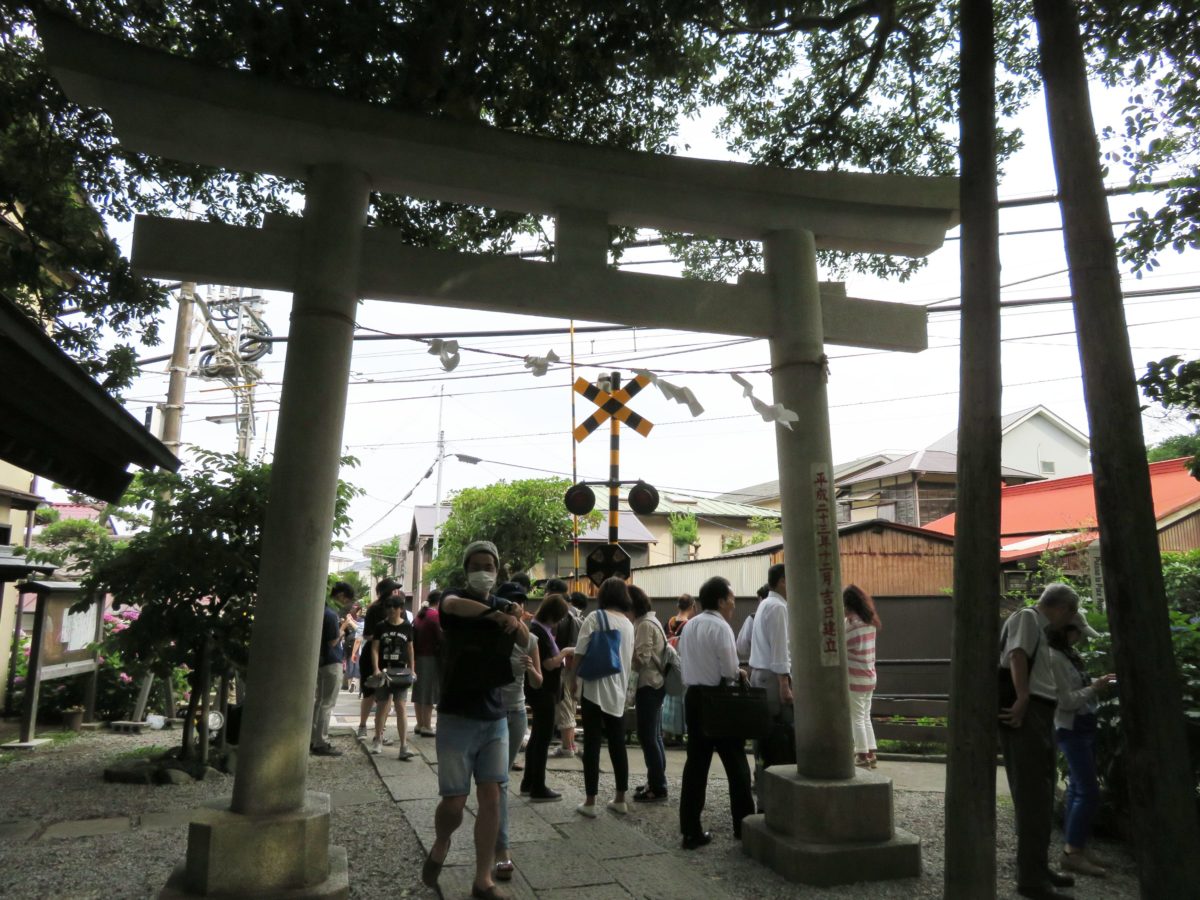 鎌倉の中心から市内の観光スポットを繋いで藤沢に向かう江ノ電沿線にもあじさいの名所が数多くあります。長谷駅から徒歩約3分の御霊神社は平安時代に湘南地域を治め、鎌倉武士の鑑とされた鎌倉権五郎景政を祭神とする神社です。境内を江ノ電がかすめて走りますが、線路沿いにあじさいが植栽されています。江ノ電のレトロな車両をあじさいの花が鮮やかに彩ります。