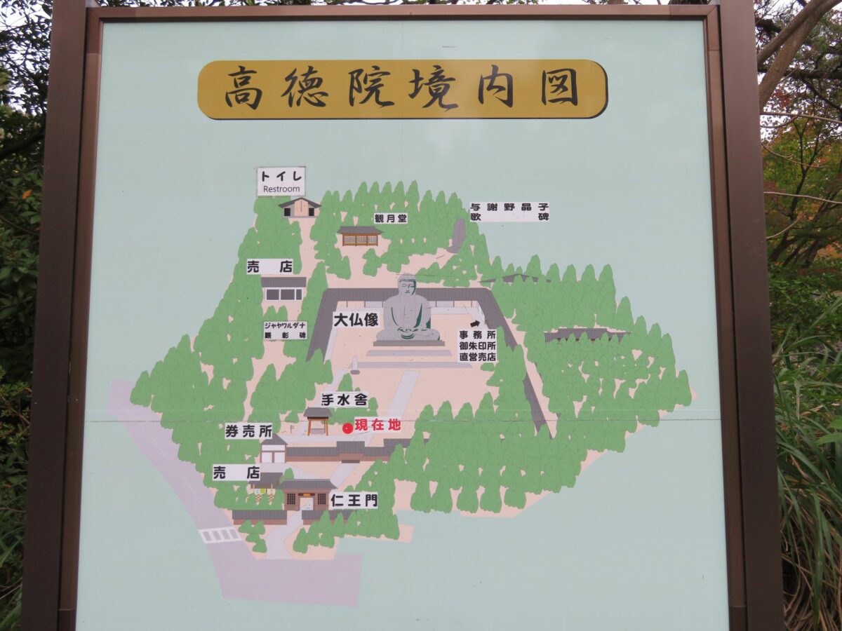 自然災害に見舞われた高徳院の境内には、わずかな堂宇しか残っていません。大仏の背面側に観音堂、大仏前の参道の南端に仁王門が残っているのみです。