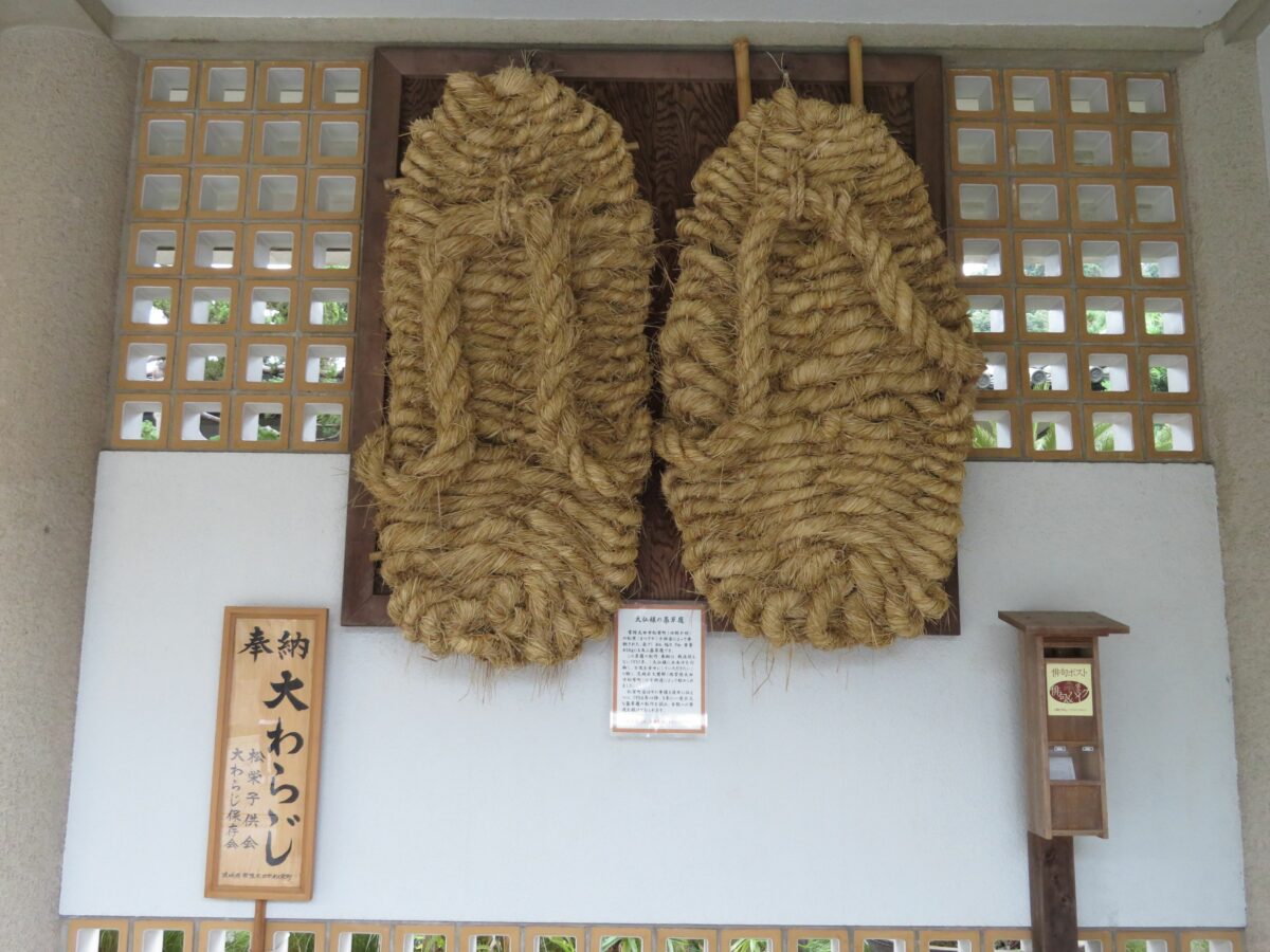 仏像東の回廊の内壁には、大わらじが展示されています。「大仏様に日本中を行脚し、万民を幸せにしていただきたい」という願いをこめて、茨城県常陸太田市の子ども達が1956年から3年おきに藁草履の寄進を続けているのです。