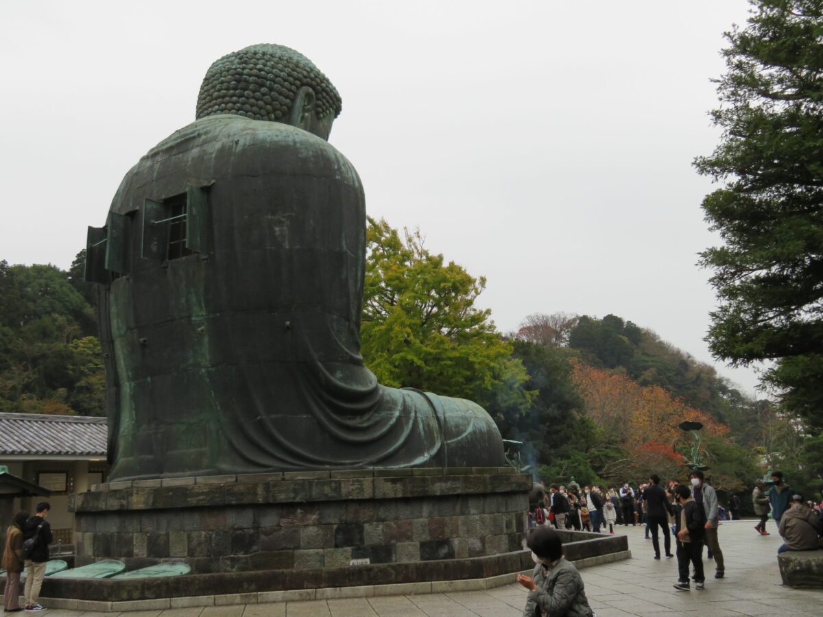 鎌倉大仏は外から参詣するばかりでなく、通常は胎内に入ることができます。ただ2021年は新型コロナウイルス感染防止のため閉鎖されています。