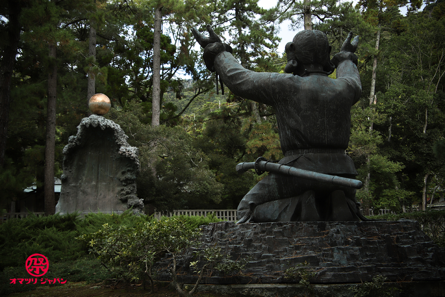 この松の参道を進むと今度は右側に「ムスビの御神像」という大国主大神(おおくにぬしのおおかみ)様の像が見えてきます。