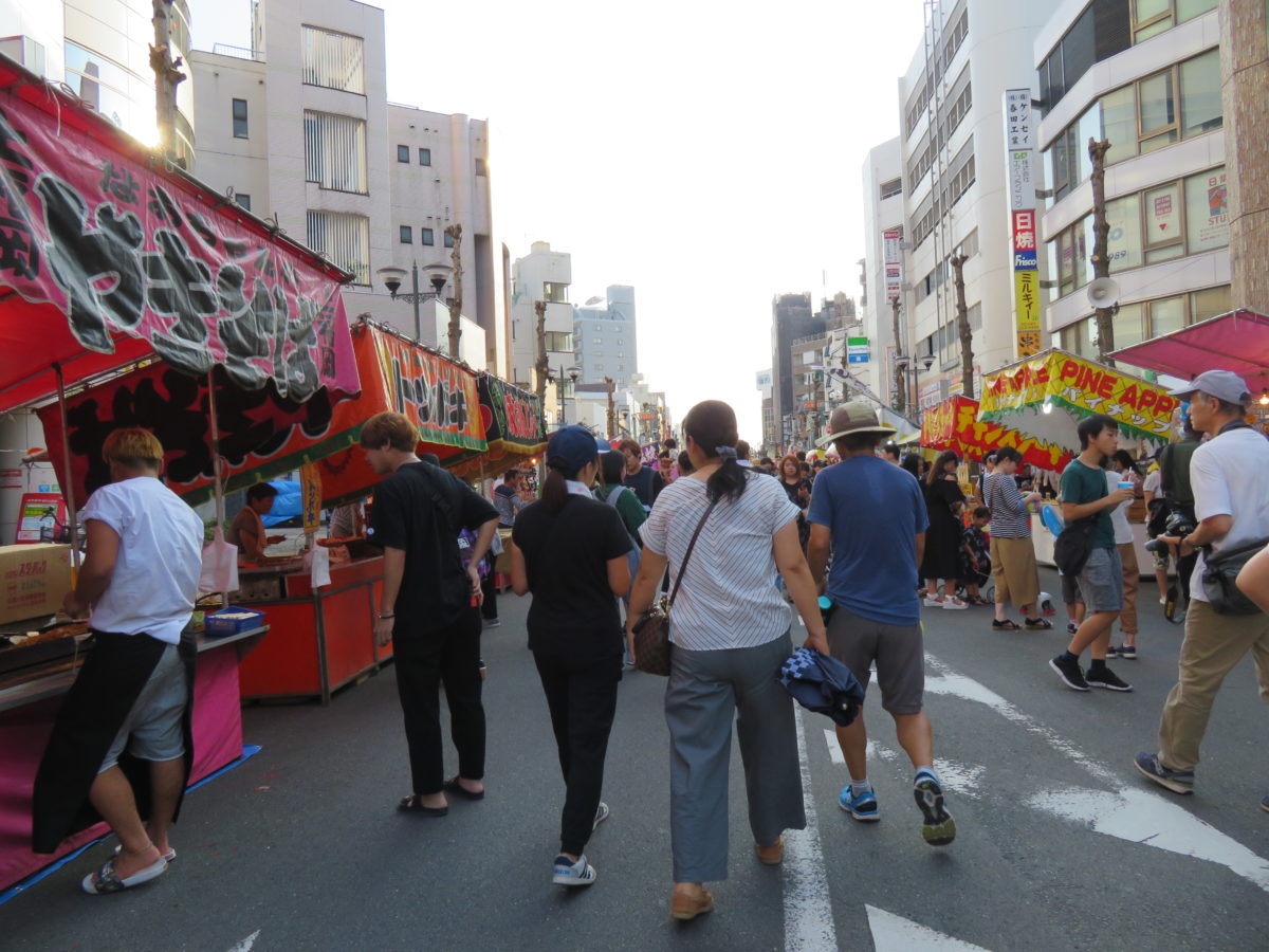 駅から祭りの「東口会場」となる福岡中央公園までを繋ぐ通りには、左右に屋台がずらっと並び、隙間が見当たらないほど!