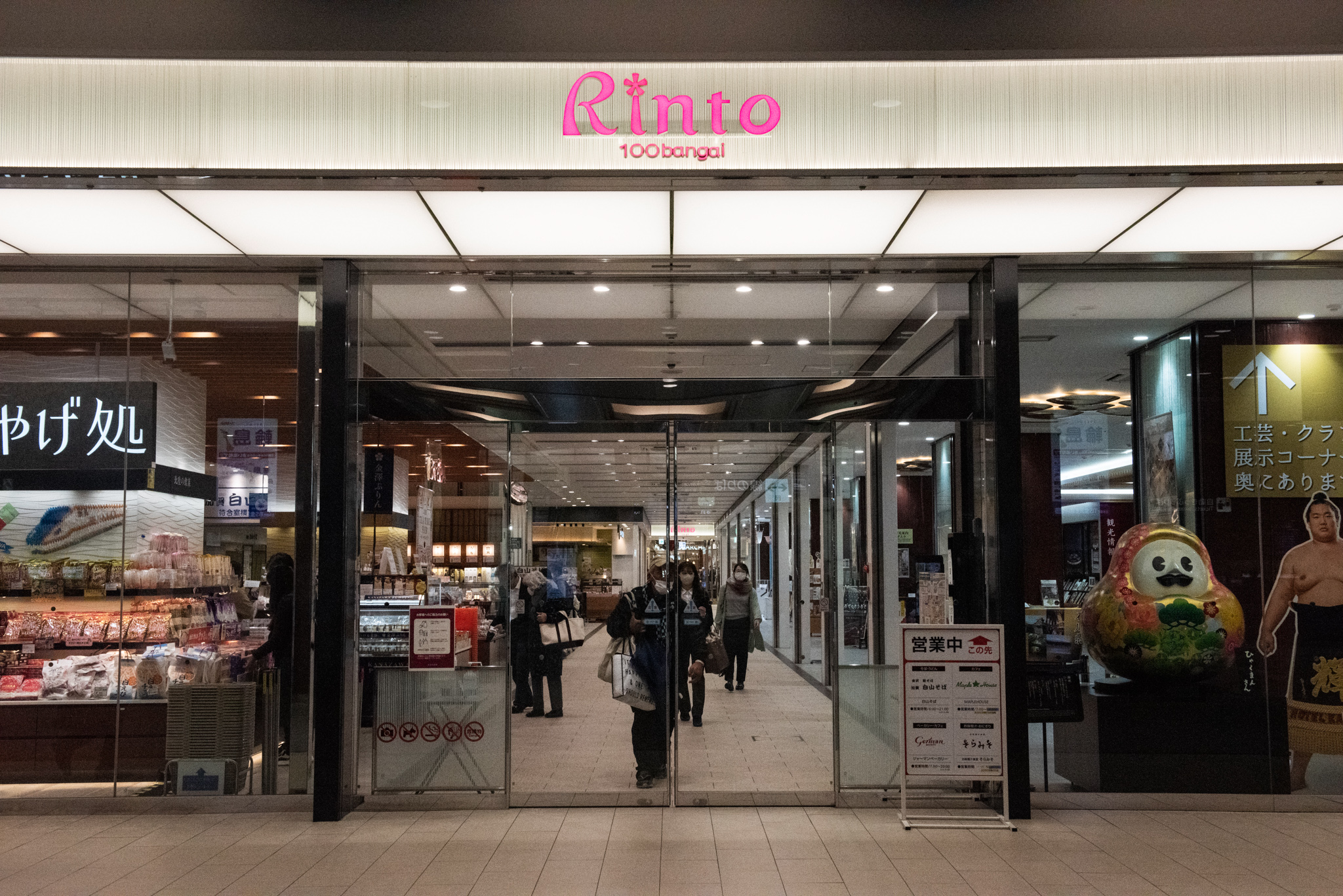 こちらが駅ナカのビルである金沢百番街だ。観光案内所やおみやげ処、レストランなどが入っており、観光客をはじめ多くの人が立ち寄る場所となっている。