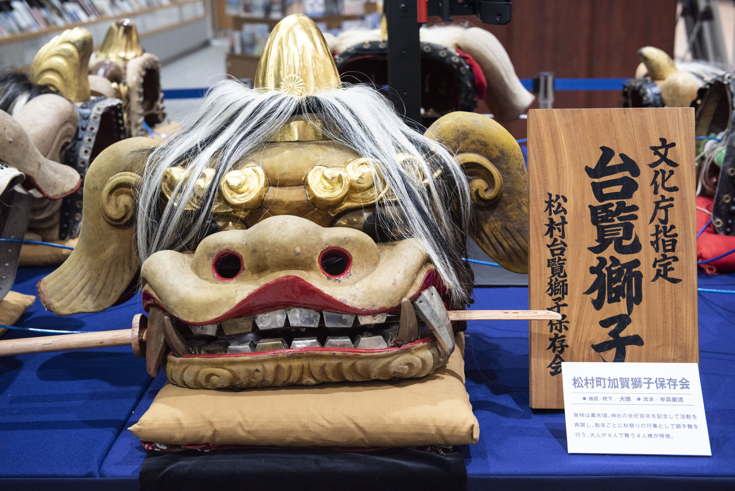 例えばこちらは文化庁指定の「台覧獅子」と呼ばれている獅子頭。大正天皇が皇太子の時に金沢を訪れ、美技を披露したこの獅子に対して、菊の御紋章を与えたことからこの名前がつけられた。