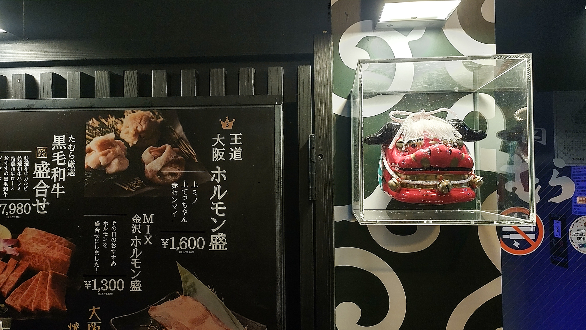 そのほかにも、焼肉屋さんの入り口に獅子頭が飾られているのを見つけた。厄払いをしてくれる縁起物として、このように獅子頭を飾っているのだろう。