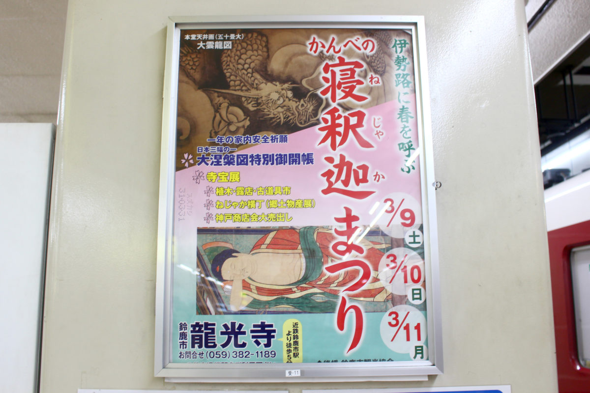三重県鈴鹿市へ来ています!鈴鹿と言えば、鈴鹿サーキットや鈴鹿山脈を聞いたことがある方もいるかもしれません。三重県の北部に位置し、名古屋から電車で40分ほどで行ける街です。そんな鈴鹿で、年に一度、3月15日前後の土日を含む3日間しか公開されないありがたい図が出るお祭りがあるとのことでやってきました。そのお祭りの名は「かんべの寝釈迦祭り」です!