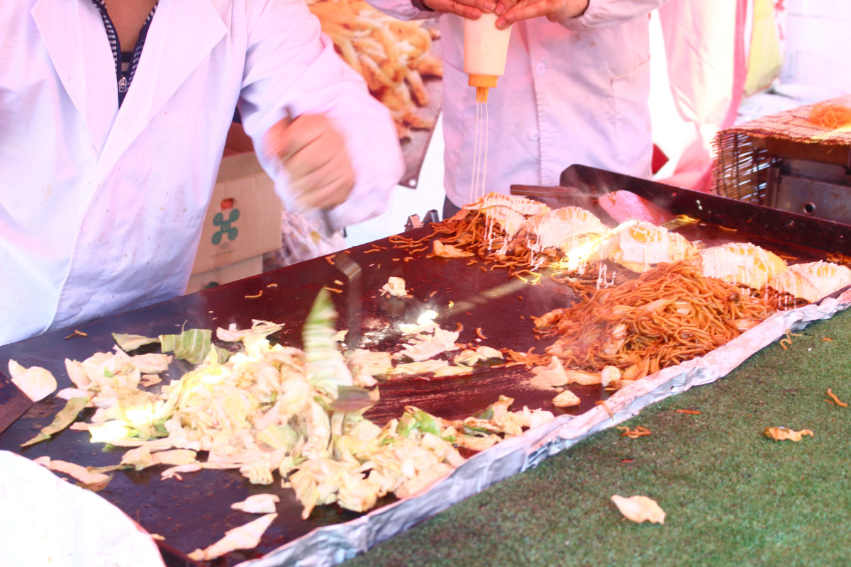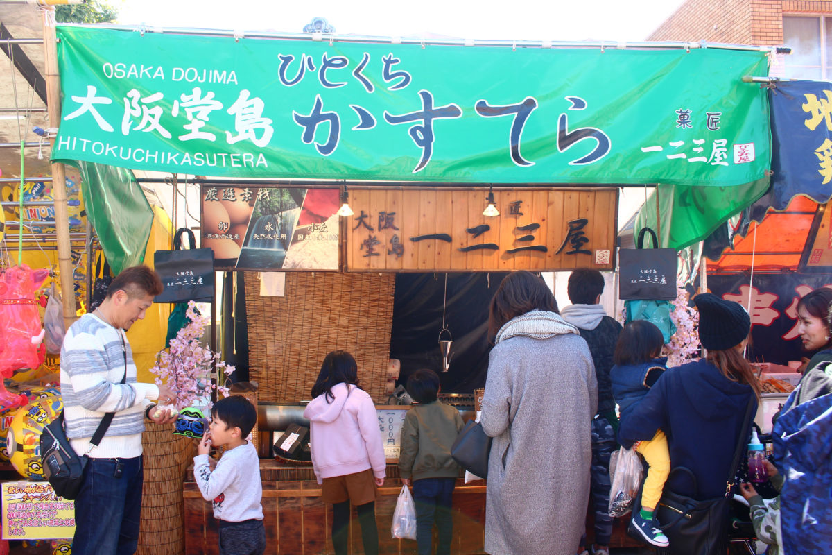 屋台を見ていくと、関西の香りを感じますね。はしまき、焼きそば、カステラと、関東在住の私には新鮮な雰囲気です!