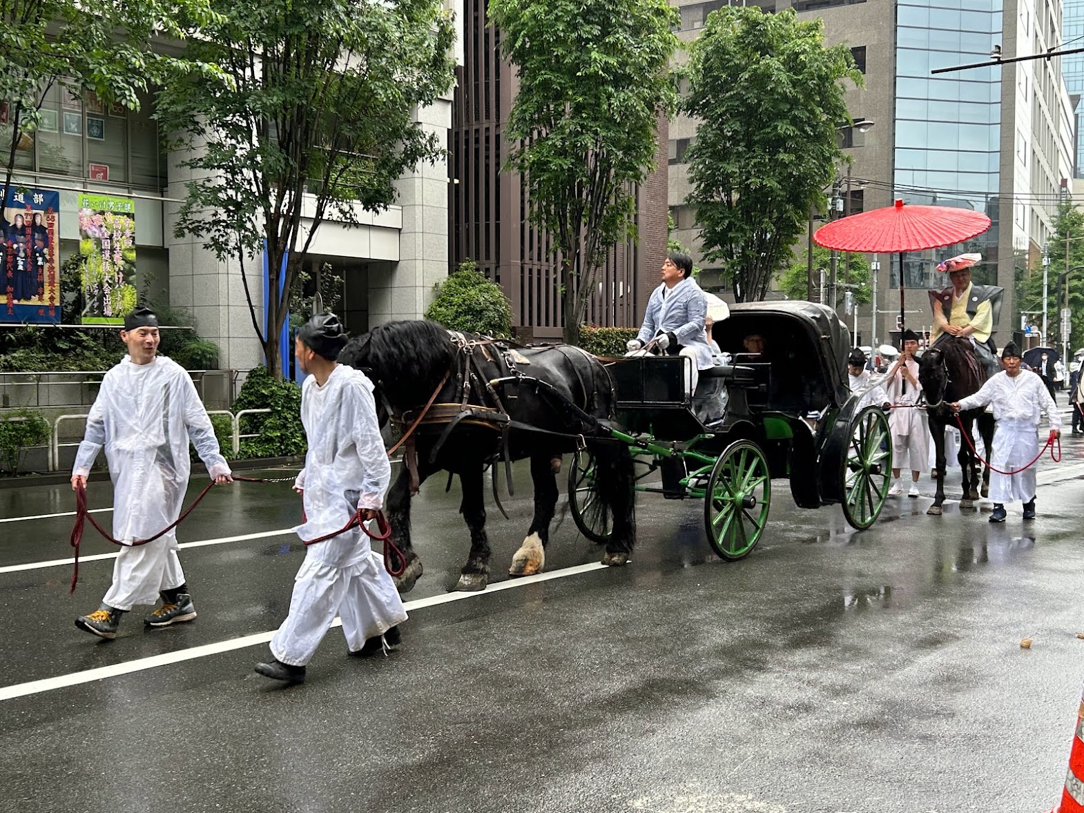 驚きの声を集めたのが、馬車。馬の迫力もさることながら、和装が多い中で、馬車の御者(ぎょしゃ)だけは洋装で、一際目を引きます。