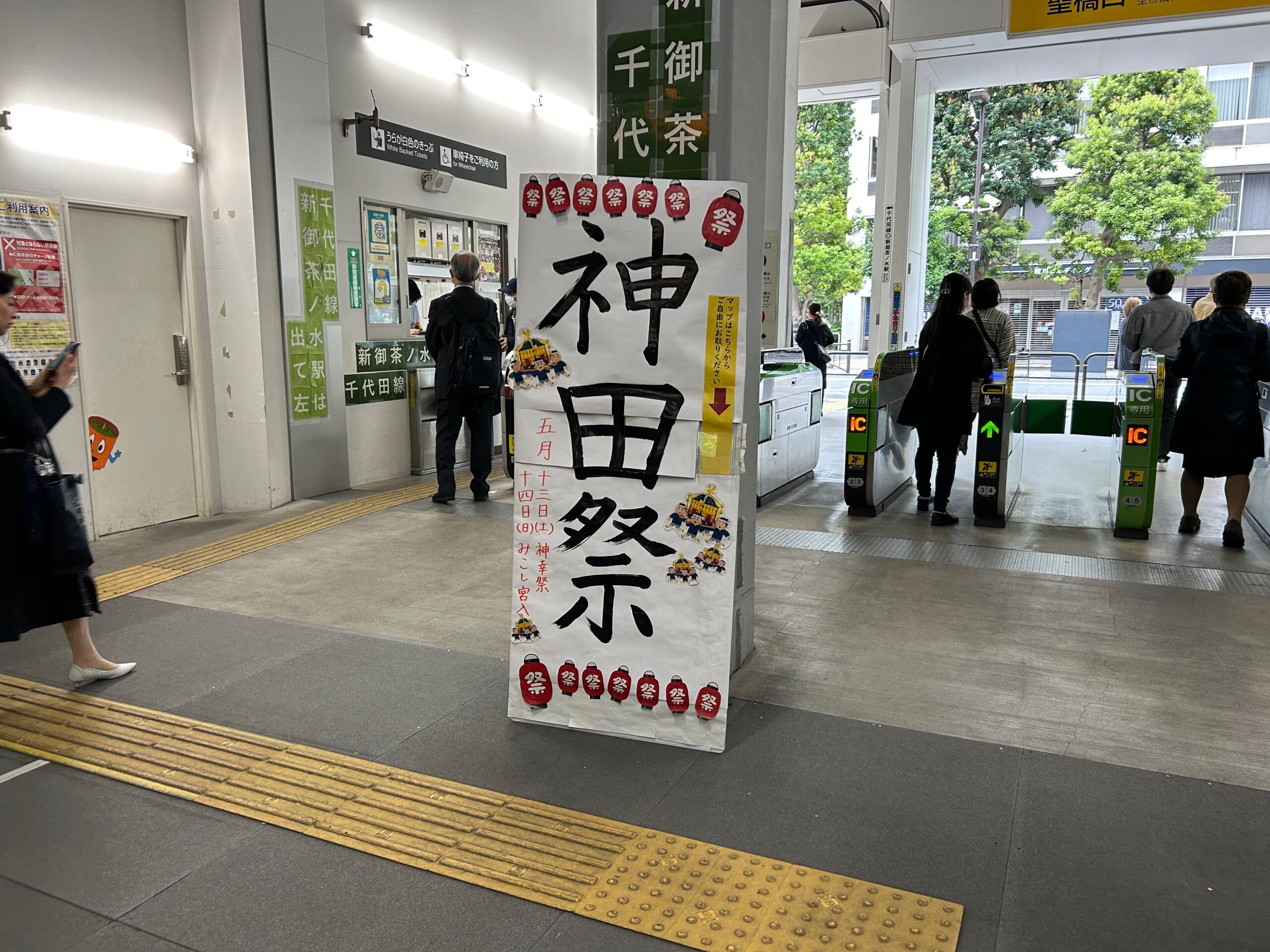 4年ぶりの祭りに沸き立つ街。神田明神の最寄りである、御茶ノ水駅でも「神田祭」のどでかい看板がお迎えしてくれました。