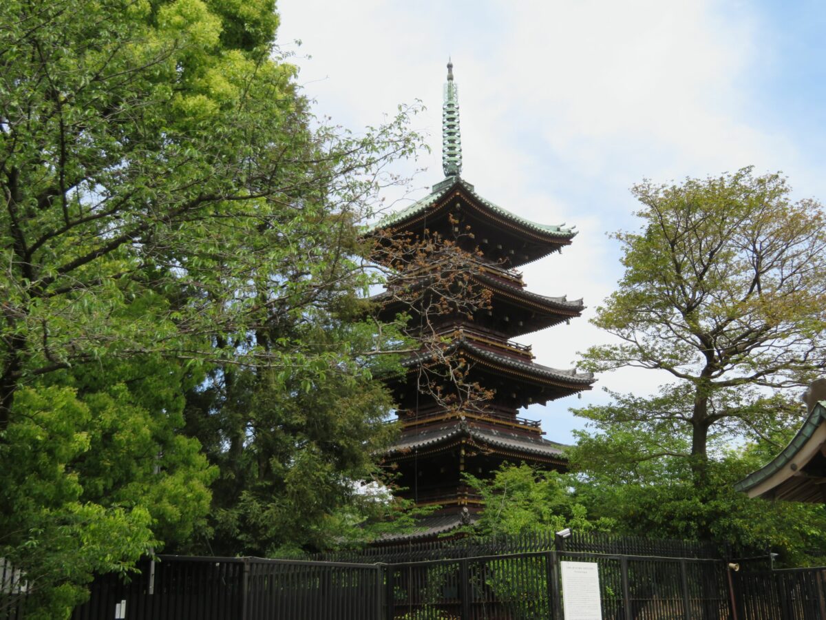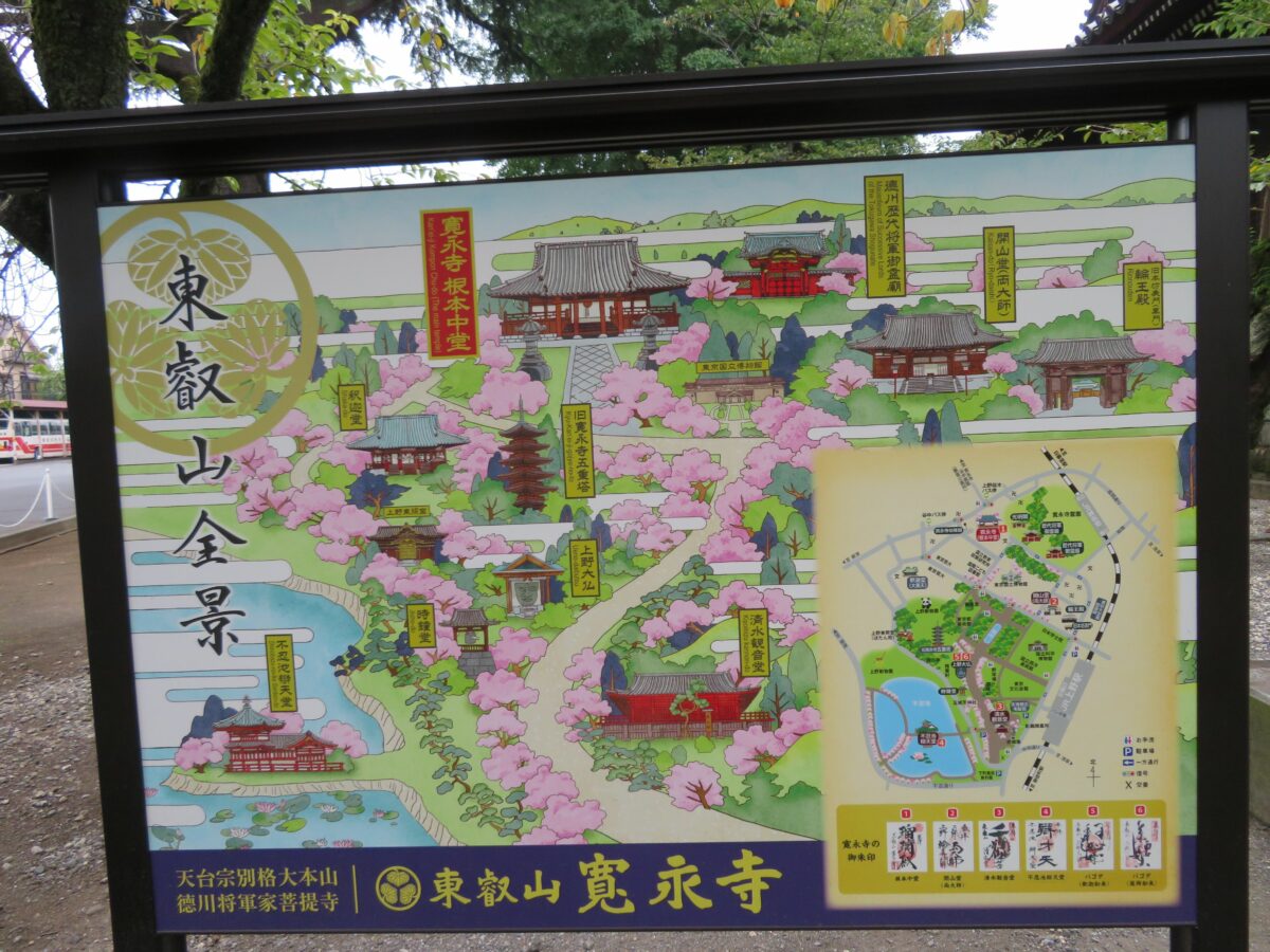 江戸城の北東の上野に江戸幕府第3代将軍の徳川家光によって創建された寛永寺では、徳川家の家紋の三つ葉葵が押印された御朱印を頂くことができます。現在の寛永寺の境内には、根本中堂、書院の他に目立った建造物はありませんが、かつて寺域に入っていた上野公園には、数多くの寛永寺の堂宇が残っています。