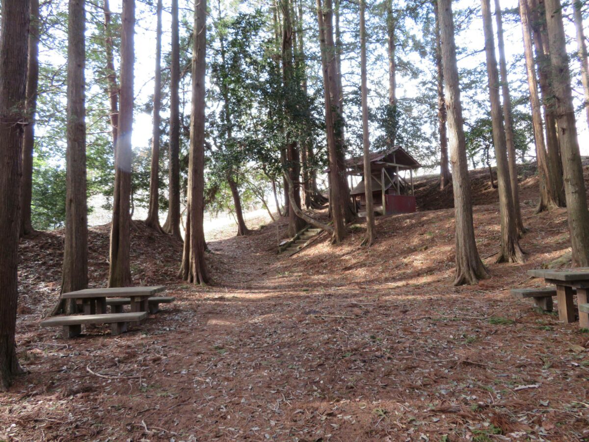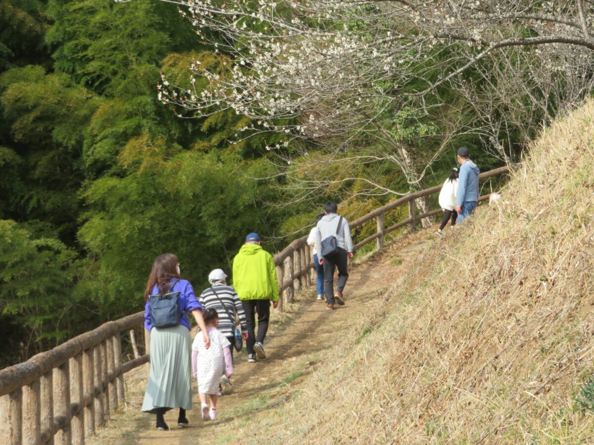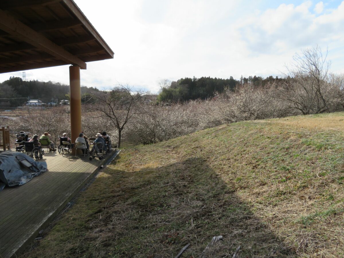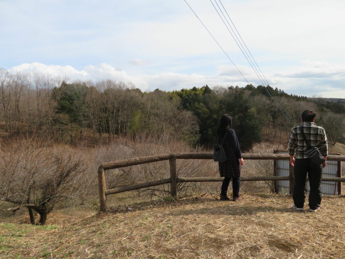 梅園内には、展望台や四阿が設けられ、眼下には梅林や市貝町の里山が広がります。
