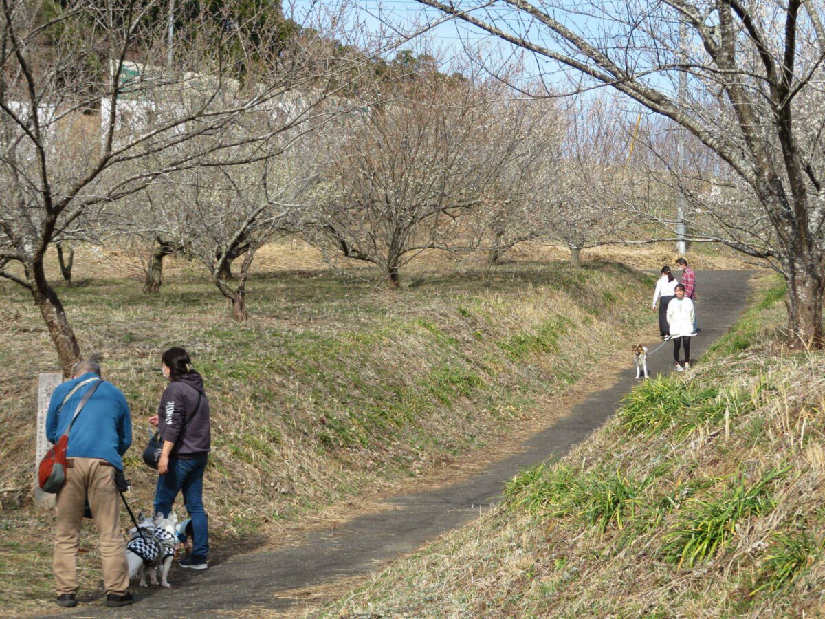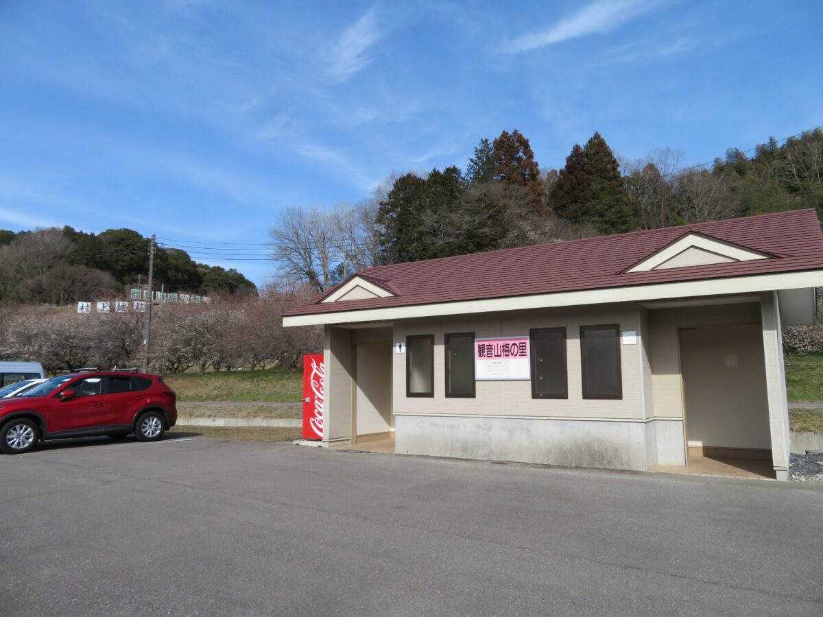 観音山の麓の農産物加工所を囲む紅梅と白梅