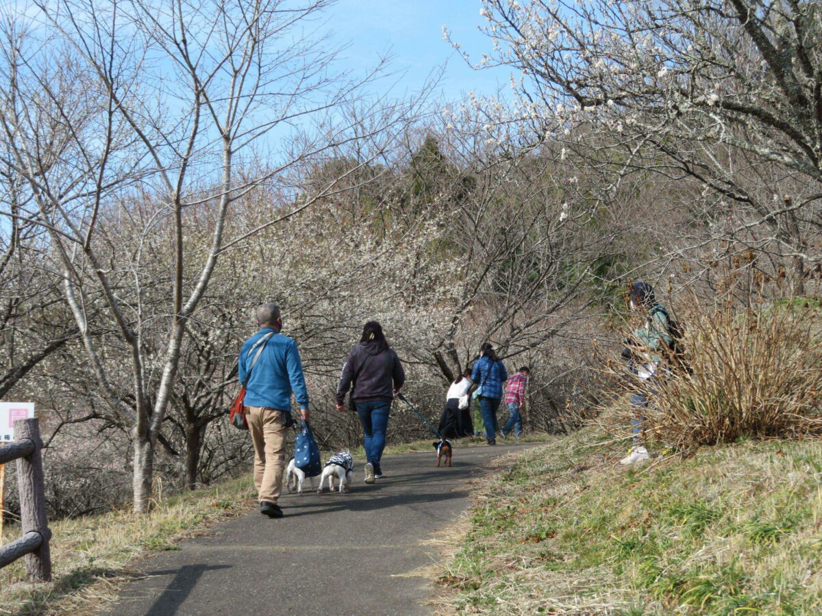 「観音山梅の里」は桜川を望む約4ヘクタールの丘陵地に、白加賀、南高梅、豊後などなど5種類の梅が、約3,000本植栽されています。なだらかな斜面に梅林が広がっているので、様々な角度から梅の花を観賞することができます。