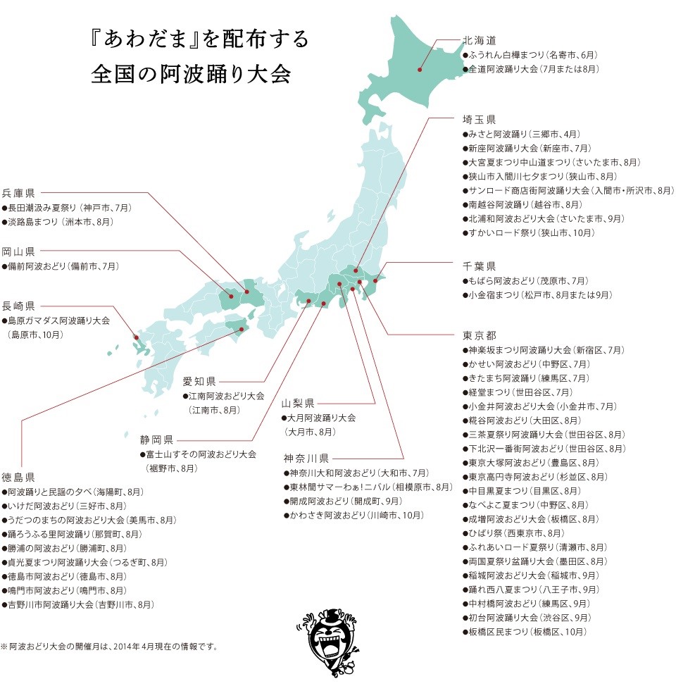 阿波踊りフリーペーパー「あわだま」を配布する全国の阿波踊り大会 ©Sarugakusha, Inc.