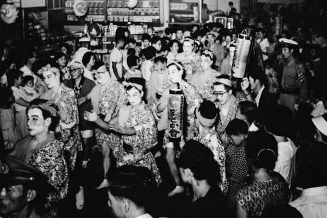 高円寺阿波踊りが始まったのは1957年。活性化を目指す地元商店街青年たちが、徳島には「道具も少なく、狭い通りでもできる踊りがある」と聞いて始めたもの。見たこともない阿波おどりをできる限り再現したものの、恥ずかしくて顔を真っ白に塗り「高円寺ばか踊り」と呼んでいました。しかし、次第に本物を追求する気質が生まれ、徳島出身者や徳島の連に師事。今年第63回を迎える、新しくも歴史あるお祭りです。