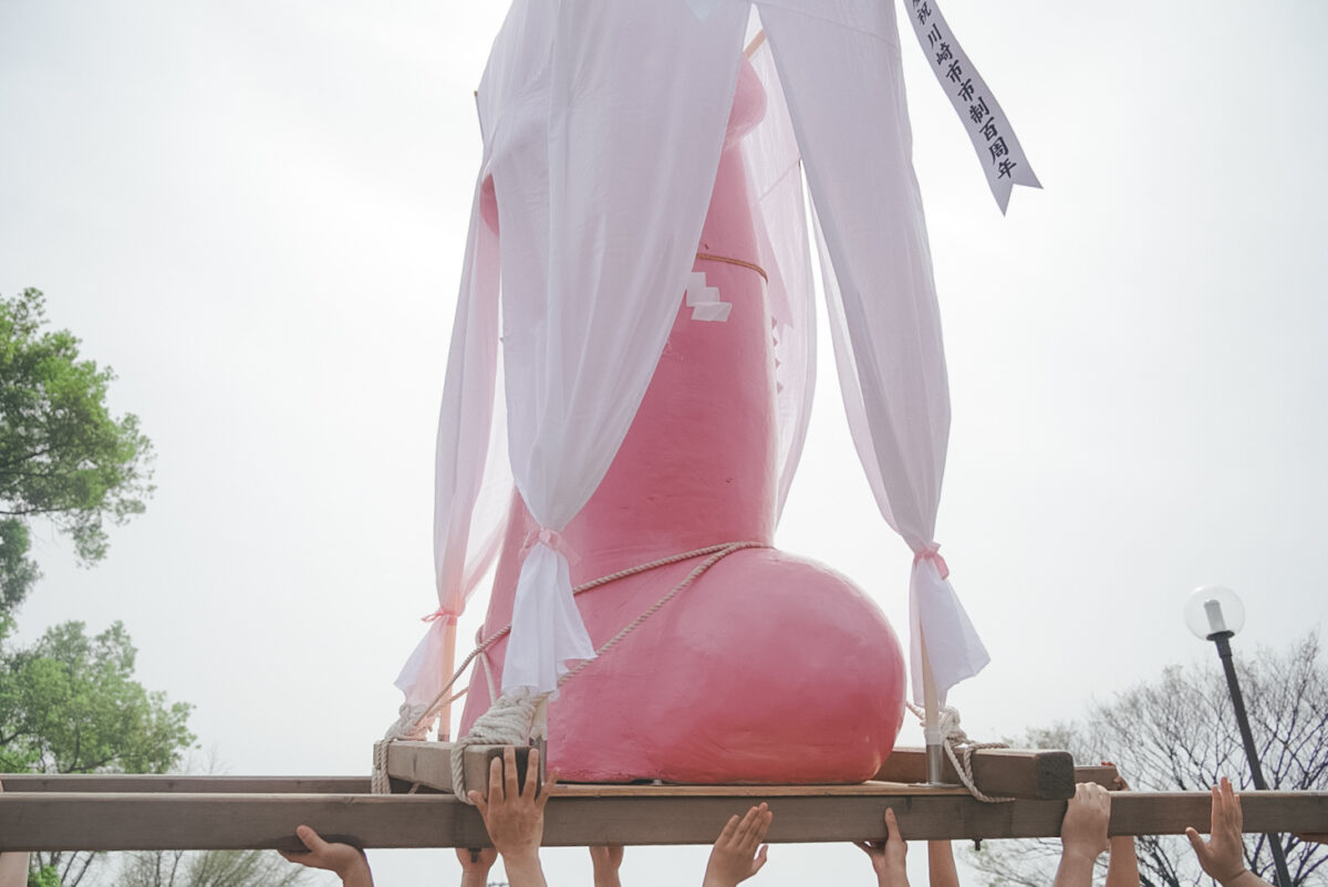ちなみに日本に男根祭りは数あるが、普通、男根神輿の男根は横に寝かした形状で担がれることが一般的だ。このように男根が天に向かって凛々しくそそり立つ姿もまた、かなまら神輿の特徴なのだ。五穀豊穣ではなく精力絶倫。イエス、ザッツかなまら。