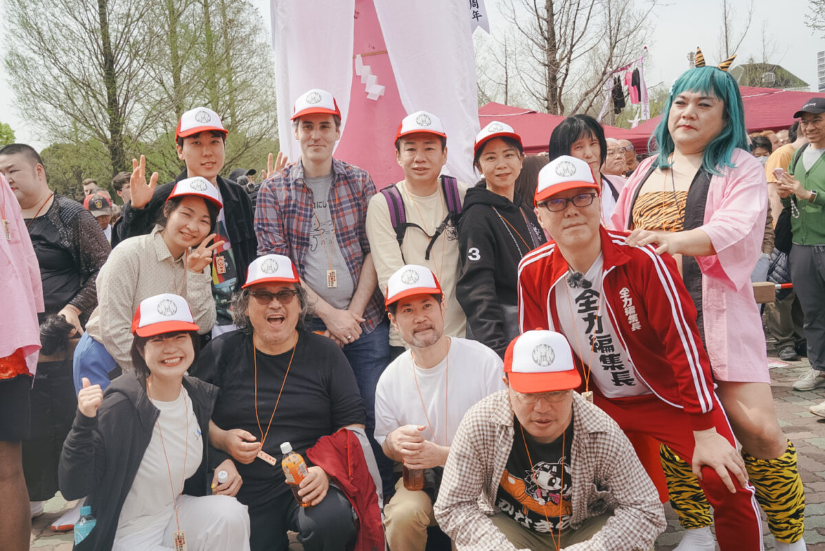 神輿が巡業しているお守り隊の任務中は個人的な写真撮影はできないため、最後に各々がエリザベス神輿とパシャリ。全力編集長は最後までやはり全力だった。