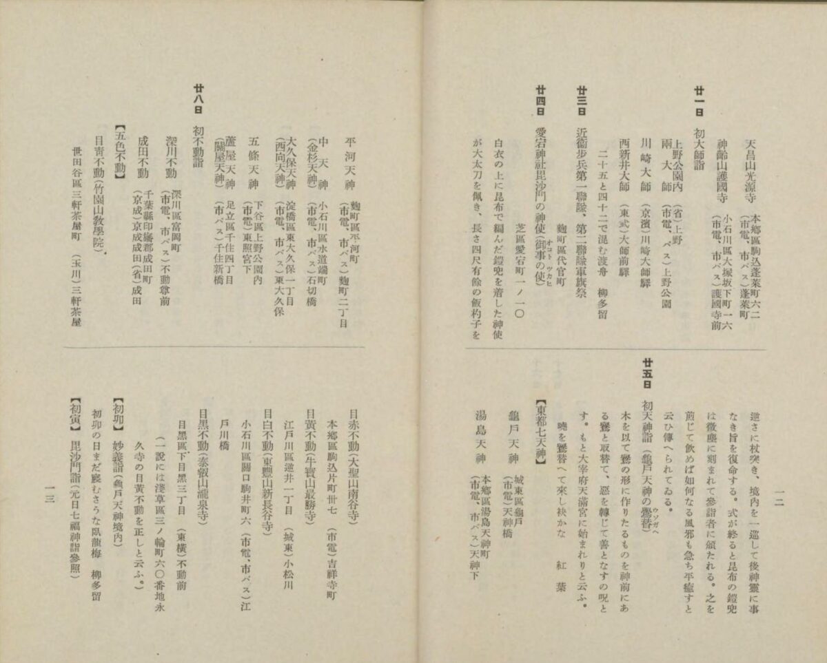 昭和12年刊行「東京の四季 : 年中行事と近郊の行楽地」にも東都七天神の記載が。(国立国会図書館蔵)