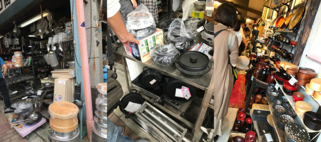場所は浅草通りと交わる菊屋橋交差点付近から言問通りまで約800mに渡たって広がります。「調理、厨房備品に関するものなら何でも揃う」れ、普段は飲食店主などの料理人が訪れる街です。専門店の総数は170店以上!
