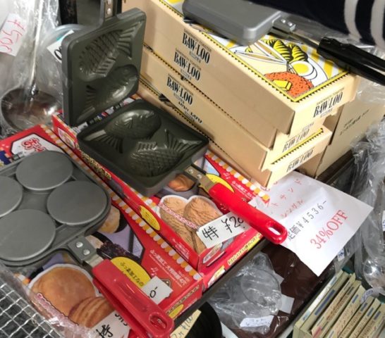 たい焼き器ね~。「これは何だ?」というので、「ワッフルメーカーだ。めでたいフィッシュの形をしていて、スイートビーンペーストを挟んで焼くんだ。スイートビーンペーストはたぶんお国では手に入らないから、ジャムやハムやチーズを挟んでもうまいはず。」と伝えけど、果たしてお買い上げいただけただろうか。