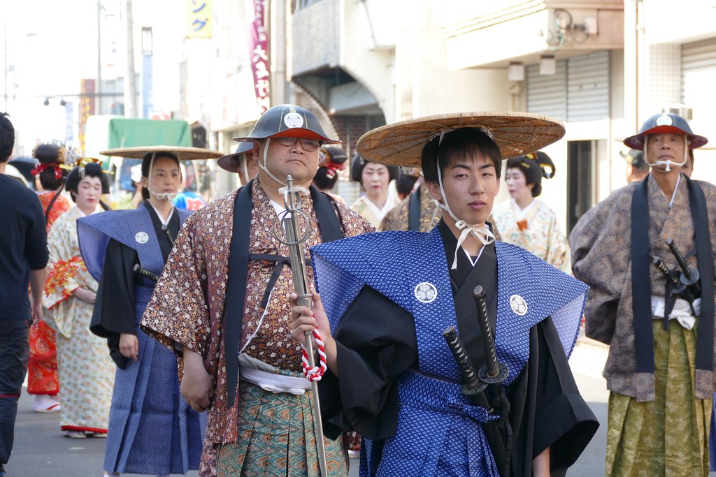 三度笠も時代行列の足袋装束の男性として登場することがあります。