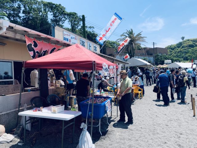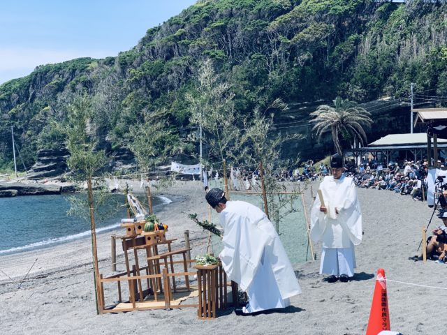 小さな森を抜けて海が見えてくると、そこはもう会場の荒井浜海岸です。
