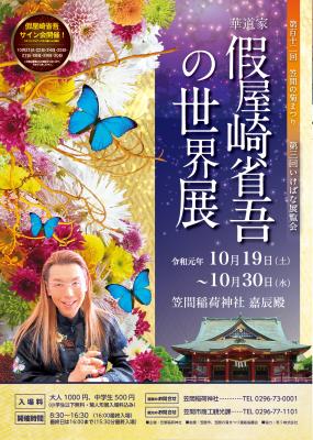 笠間稲荷神社境内「嘉辰殿」で行われる、笠間の大菊と假屋崎省吾さんのコラボレーション企画。昨年に続き2回目の開催です。今年、還暦を迎えた假屋崎省吾さんが切り拓く新境地、華麗なる美の世界を堪能することができます。