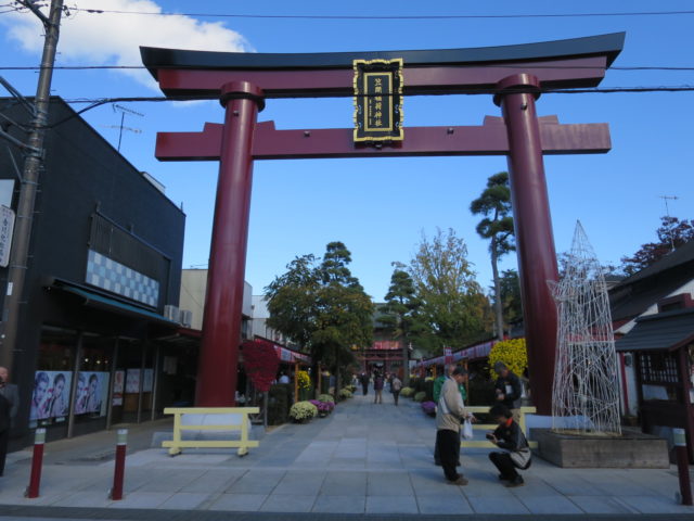 神社の前のお土産やさんや飲食店が立ち並ぶ「門前通り」にも菊の花が所々にあって、お散歩も楽しいです。