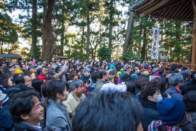 参加者が餅まきを今か今かと待っている