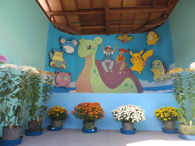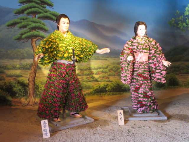 実は、菊の花を根っこごと人形の体にくっつけているのです!なので、水やりなどの管理をしっかり行えばきれいに咲き続けてくれるのです。(途中花の交換はあり)