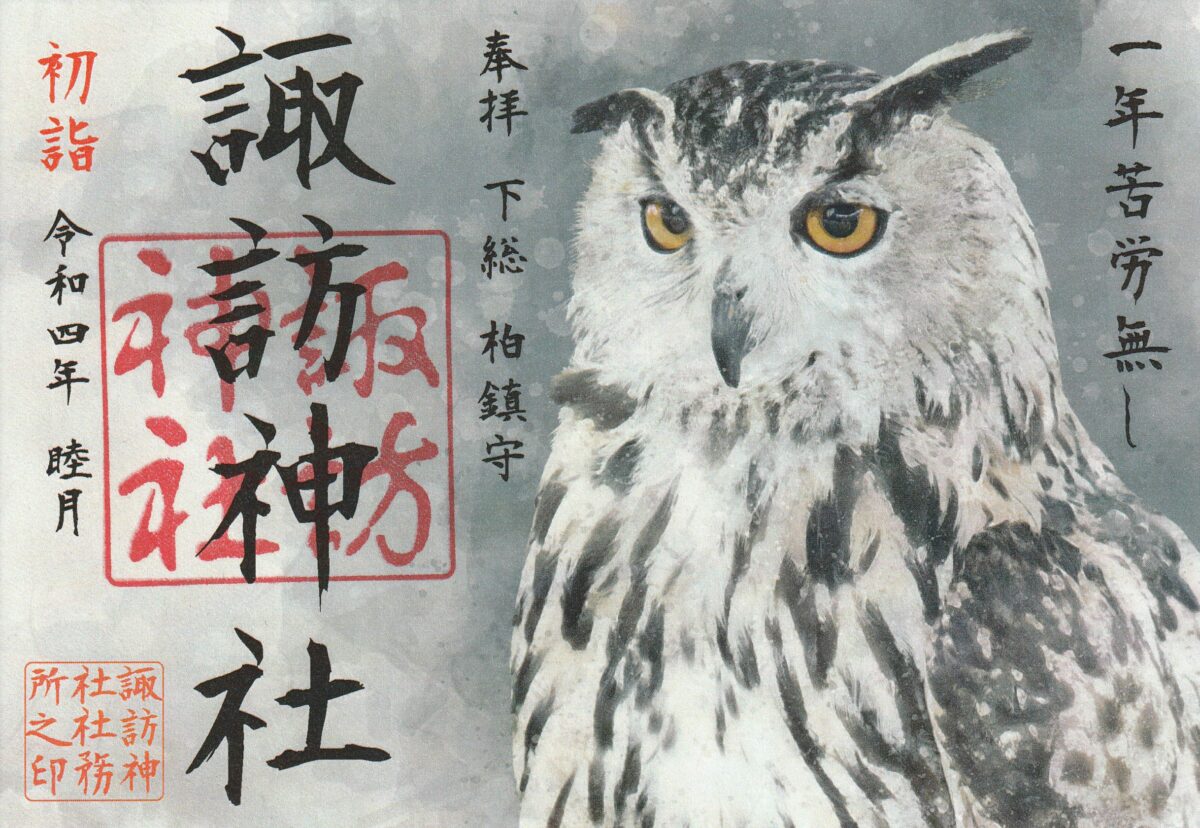 2022年1月の諏訪神社の「フクロウ」が描かれる月替わり御朱印